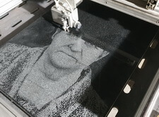 Согласовав получившийся портрет с клиентом, мы перешли ко второму этапу – нанесению чёрно-белого изображения на гранит с помощью гравировального станка. Это позволит не только создать основу для будущего портрета, но и поможет повысить качество переносимой фотографии.