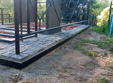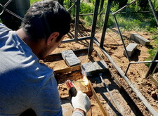 Тем временем опалубка окончательно высохла, и у нас появилась возможность вернуться к периметру участка. Отмерив брусчаткой точную ширину линии, мы приварили к уже существующему металлическому каркасу внутренние элементы.
